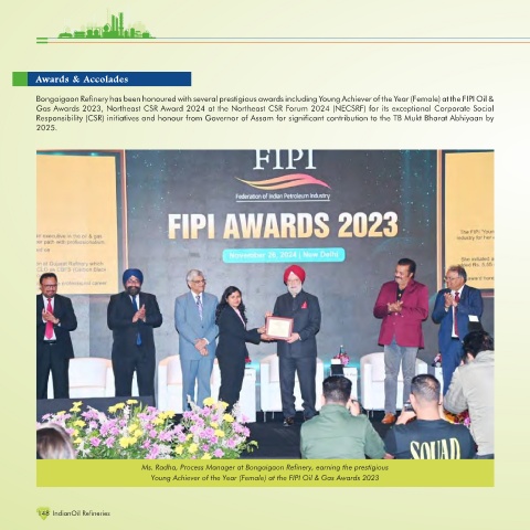 Bongaigaon Renery has been honoured with several prestigious awards including Young Achiever of the Year (Female) at the FIPI Oil &